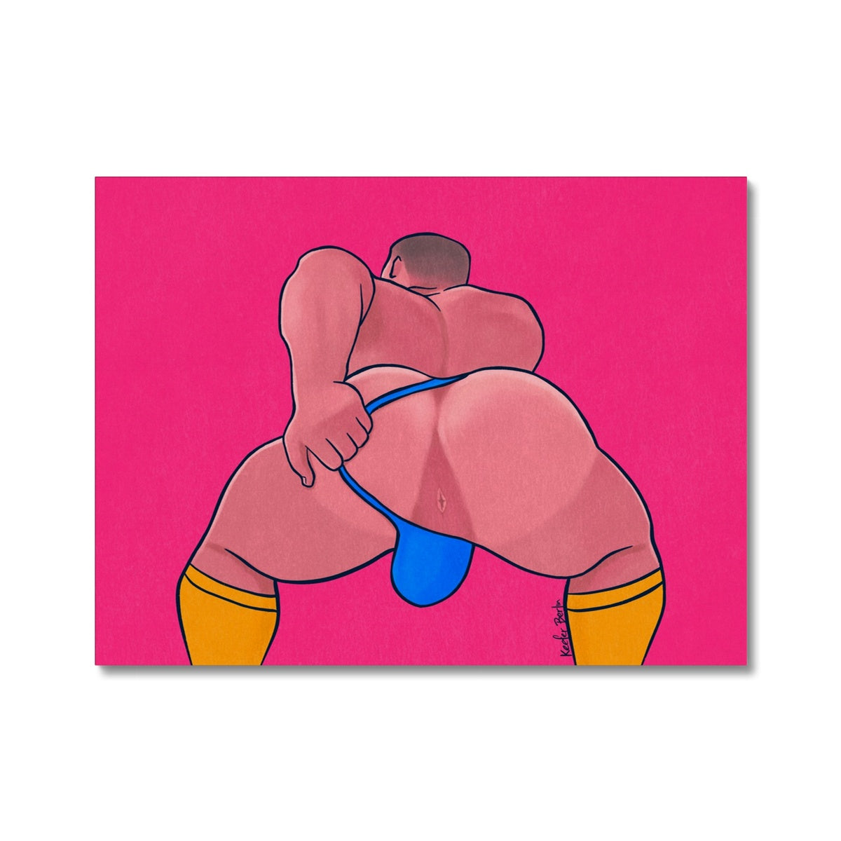 Each of these fantastic gay art by Keefer Berlin is custom stretched canvas and begins with a 12-color Giclée print, produced from a choice of substrates. The printed canvas is then stretched over custom wooden frame using finger-jointed canvas frames to create corner tension which helps to resist warping. For larger sizes, we add wooden ‘wedges’ to each corner; ensuring the canvas surface remains taut and allowing for easy re-stretching in future years.
